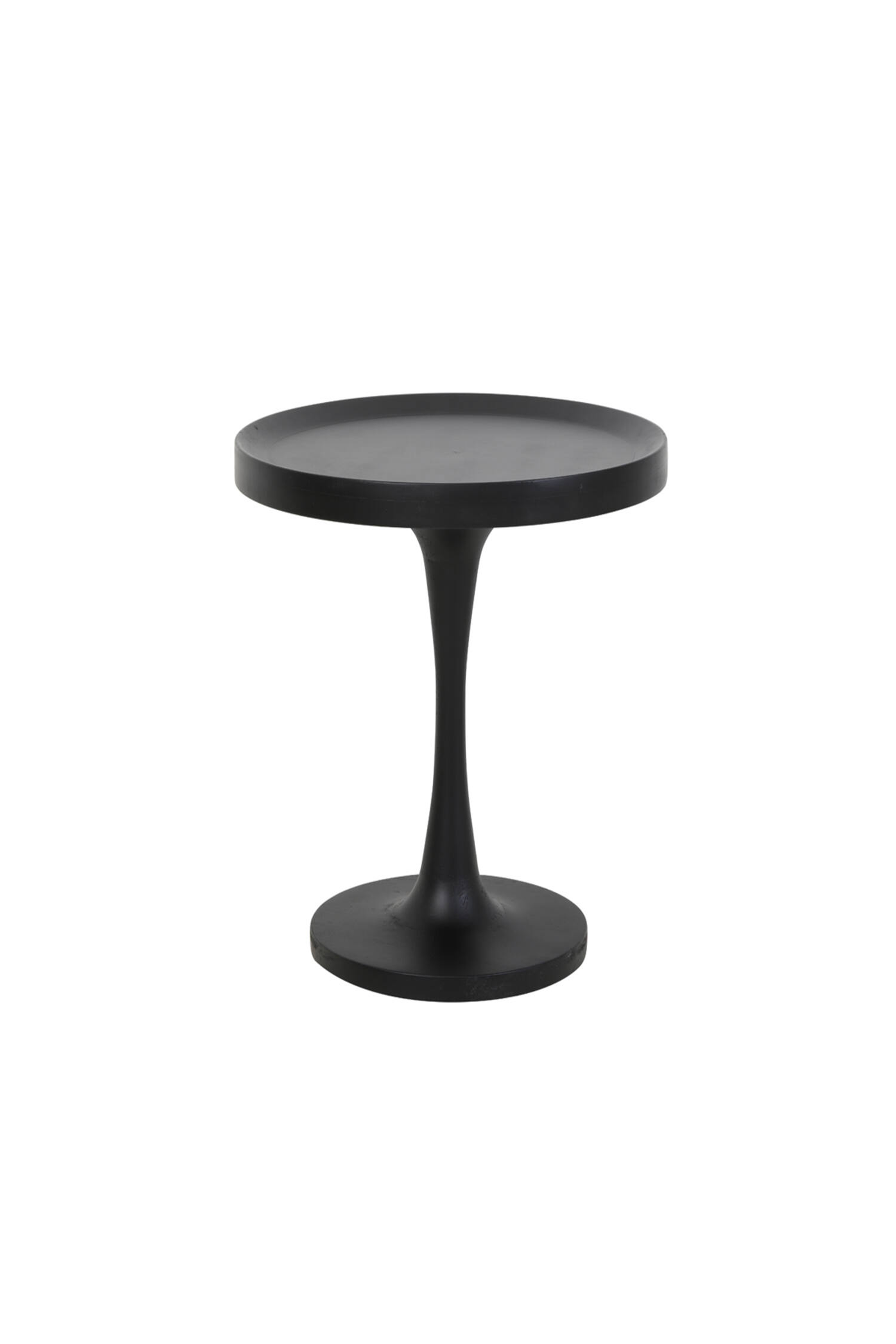 Mesa lateral Joekon de madera color negro, su base y plataforma circular dispuestas de mayor a menor en diámetro le da un aspecto estético muy particular a tus espacios, dándoles un nuevo look.