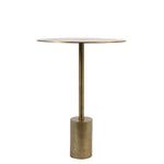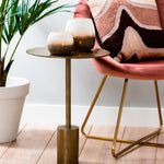 La Mesa Lateral Molo de metal circular color bronce, su tamaño es perfecto para cualquier espacio de tu casa.
