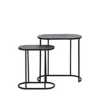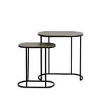 El set Mesa lateral Bocov ofrece una apariencia elegante y sobria que complementa interiores contemporáneos e industriales. Estas mesas, fabricadas en metal, presentan un diseño versátil que permite usarlas juntas o por separado, adaptándose a diversas configuraciones de espacio. Su acabado rústico añade textura y carácter, convirtiéndolas en una elección perfecta para resaltar detalles decorativos o brindar funcionalidad en cualquier ambiente​
