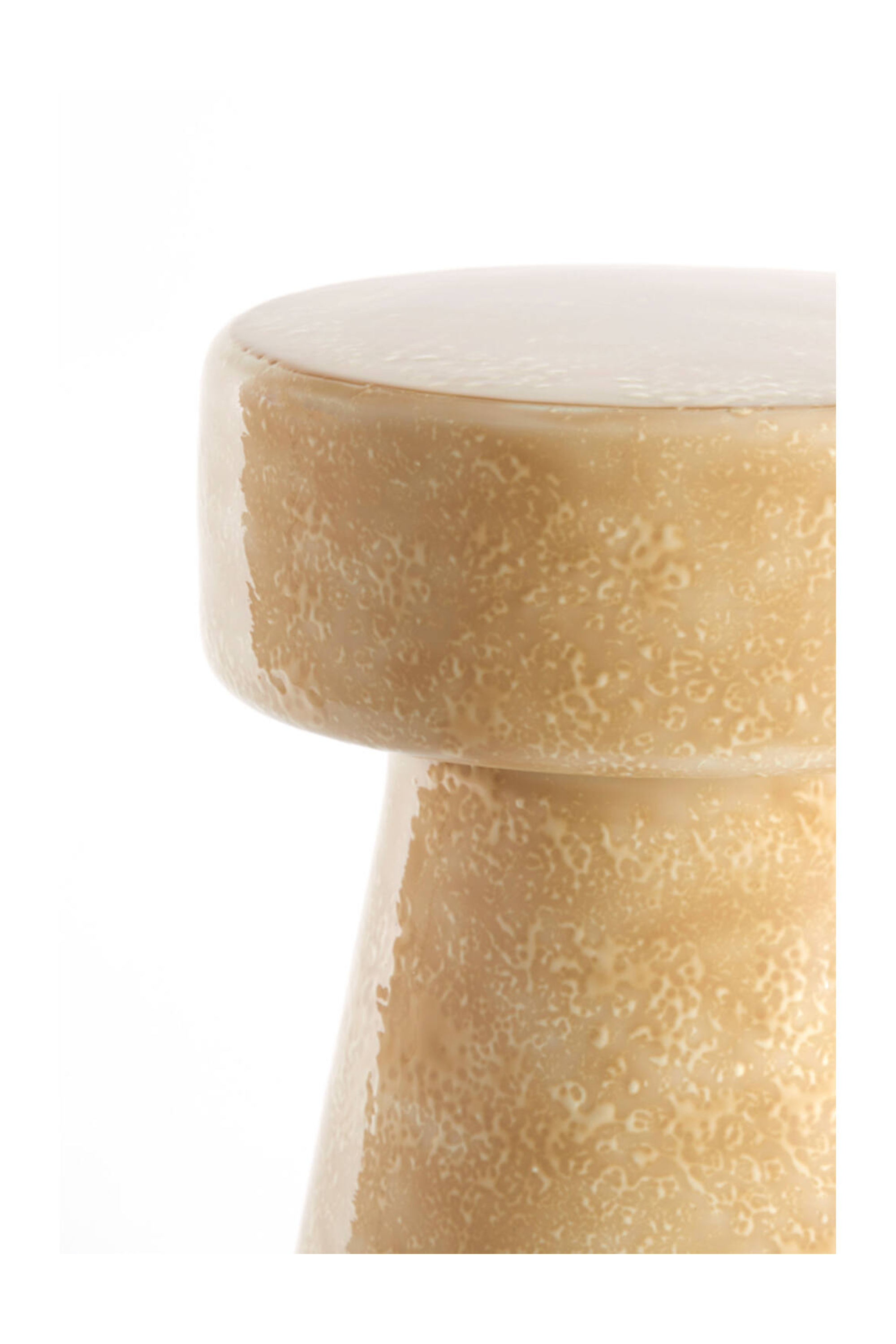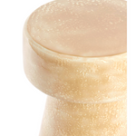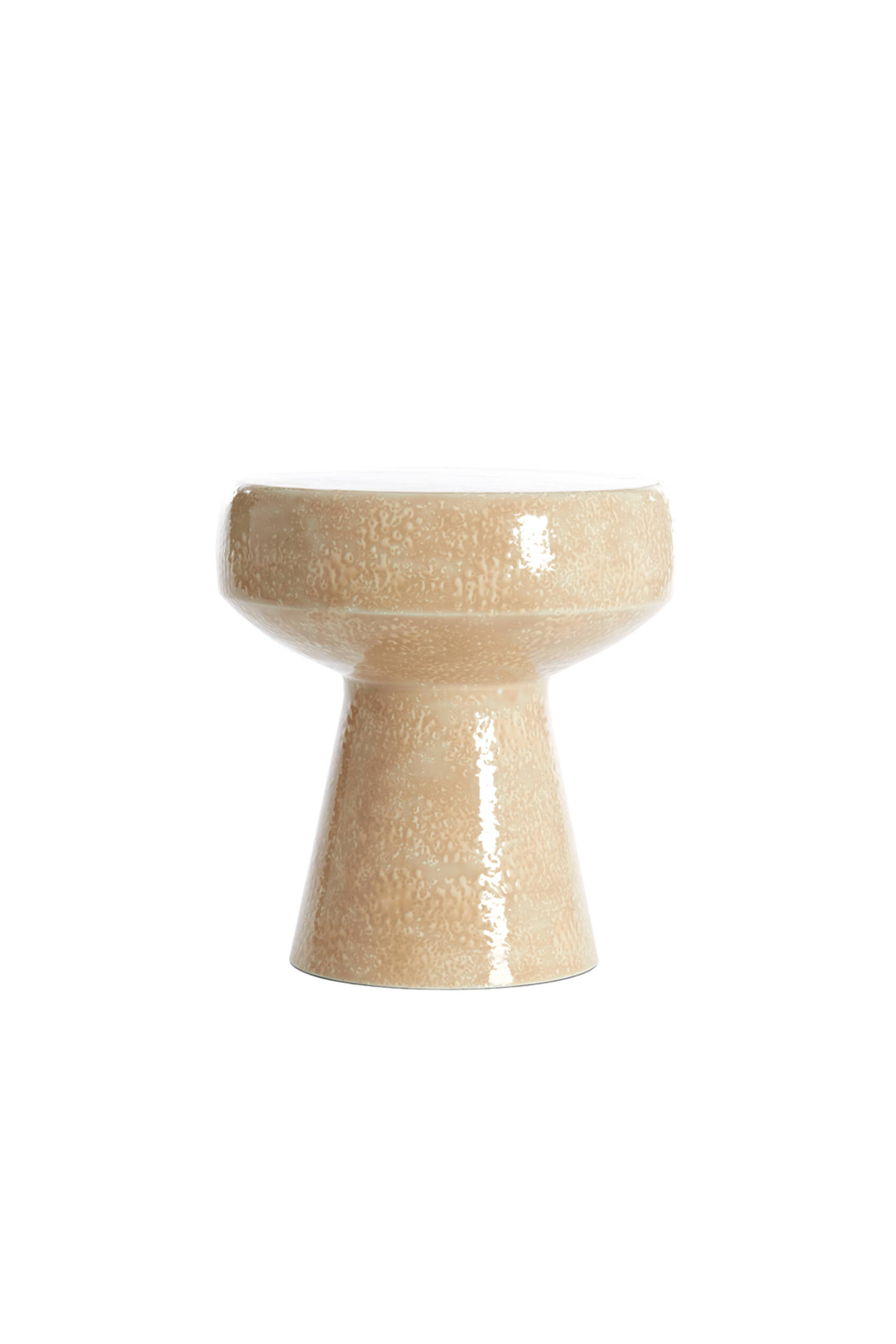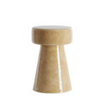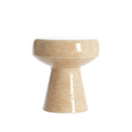 La mesa lateral Dakwa combina forma escultórica y acabado brillante en un diseño cerámico de inspiración retro. Su textura sutil y silueta en forma de reloj de arena la convierten en una pieza decorativa ideal como mesa lateral o pedestal decorativo en espacios modernos o bohemios.