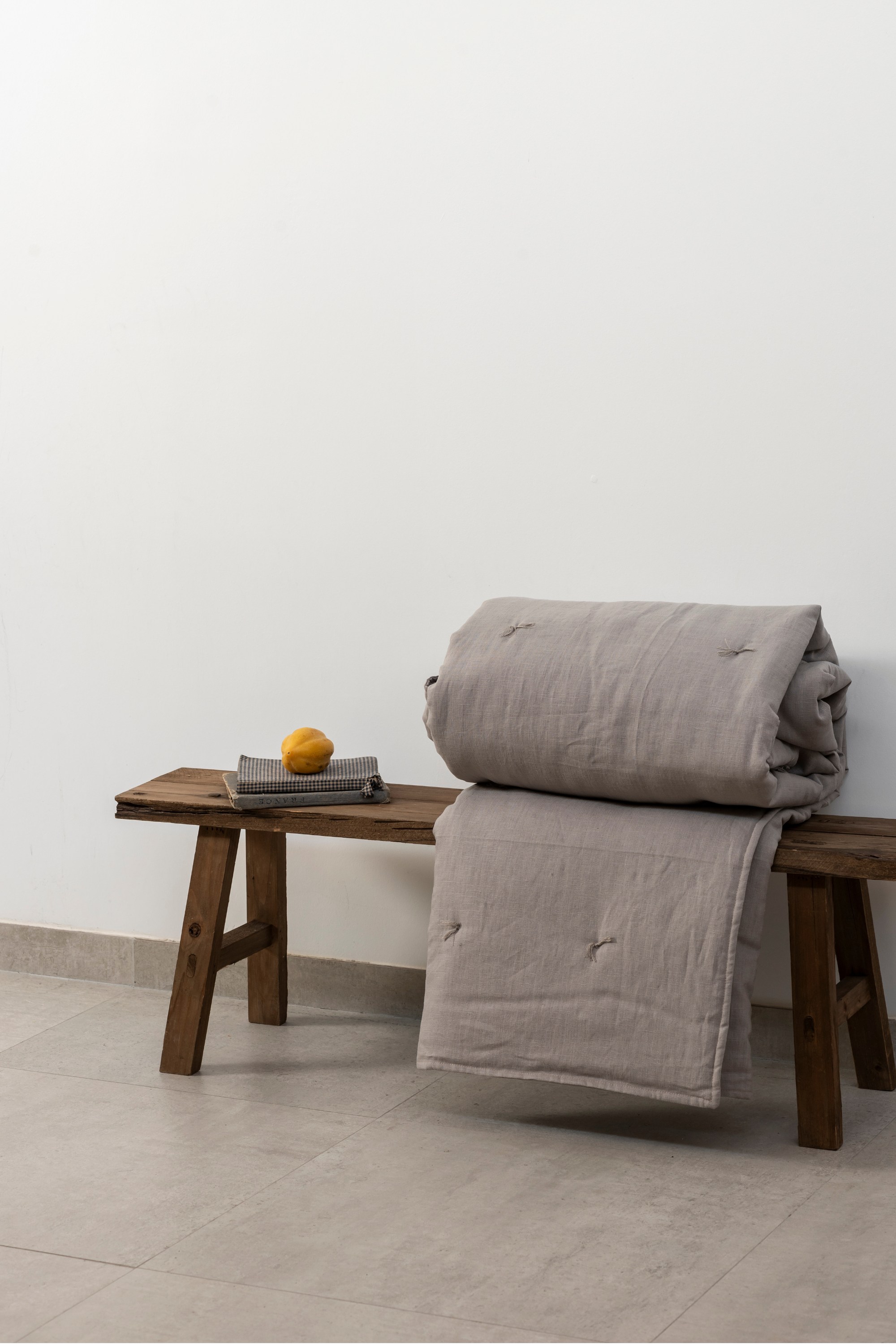 Piecera 100% lino pre-lavado diseño tomadas. Complementa tu cama con diseño y calidez.