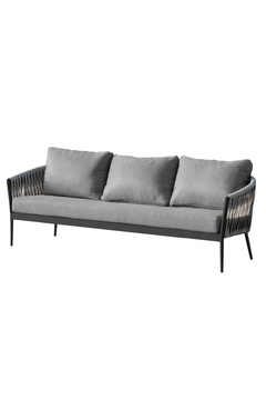Estructura de aluminio electropintado color gris, respaldo con tejido color gris y cojines rellenos con espuma de alta densidad, funda confeccionada con tela acrílica con filtro UV, anti hongos, para exterior, en color gris.