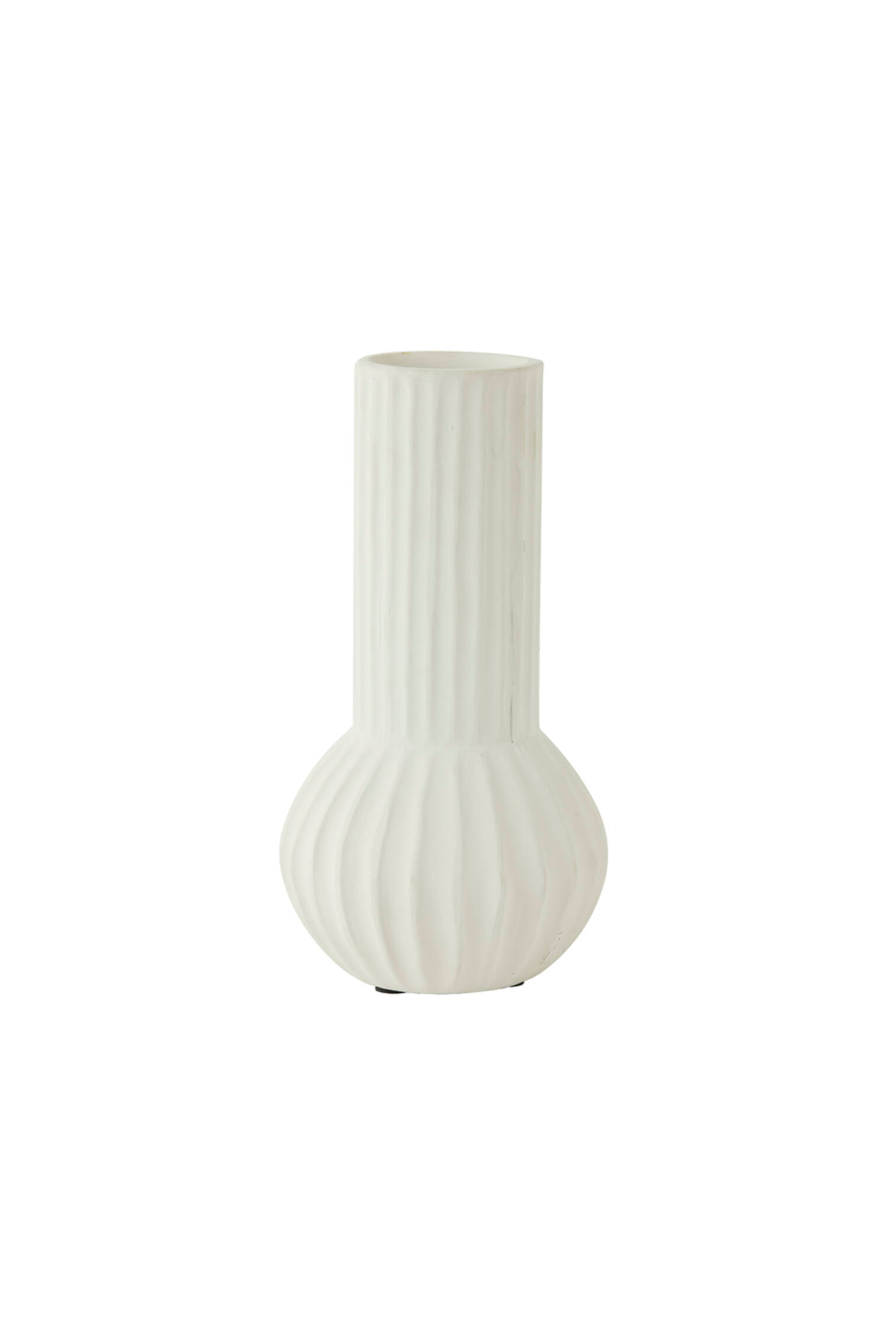 Jarrón Feyo acanalado matte hecho de cerámica. Es versátil y quedará bien en el espacio que elijas como un objeto decorativo o como florero.