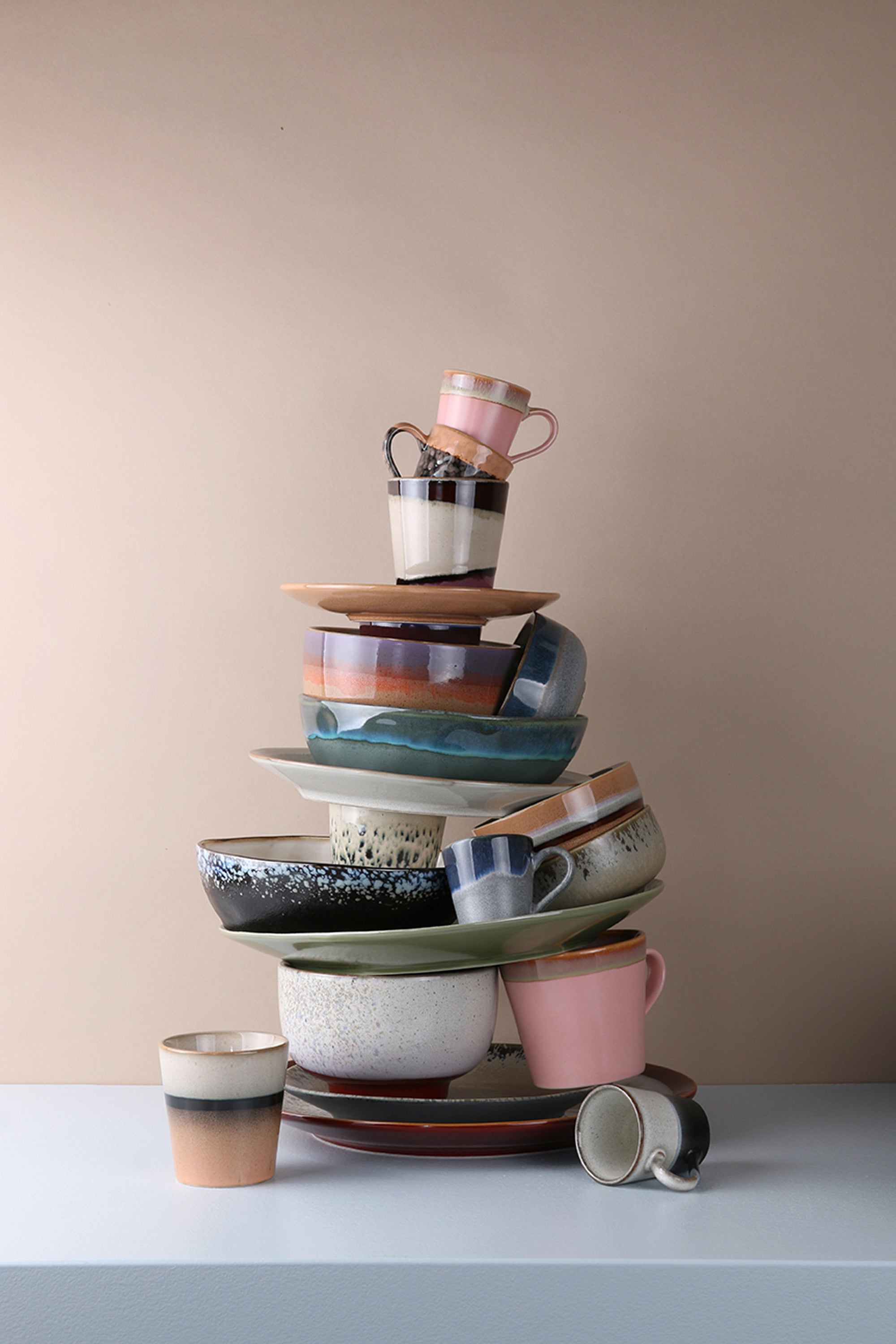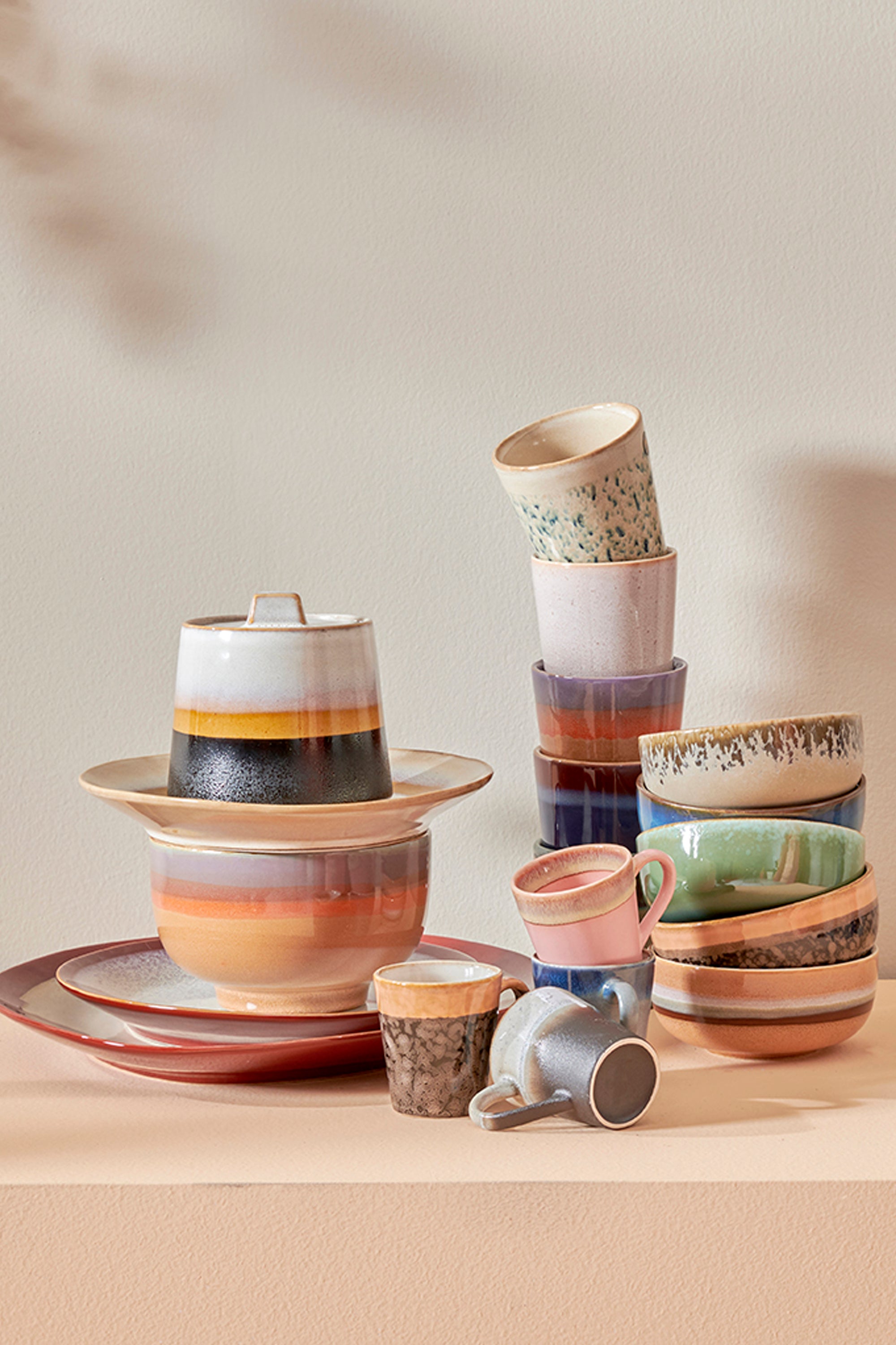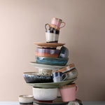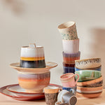 Una actualización fresca de los tazones de Espresso de los 70's, son un set de 4 tazones de múltiples colores, cada tazón es único y hecho 100% a mano, el set esta embazado en una caja negra de cerámica icónica de los 70's.