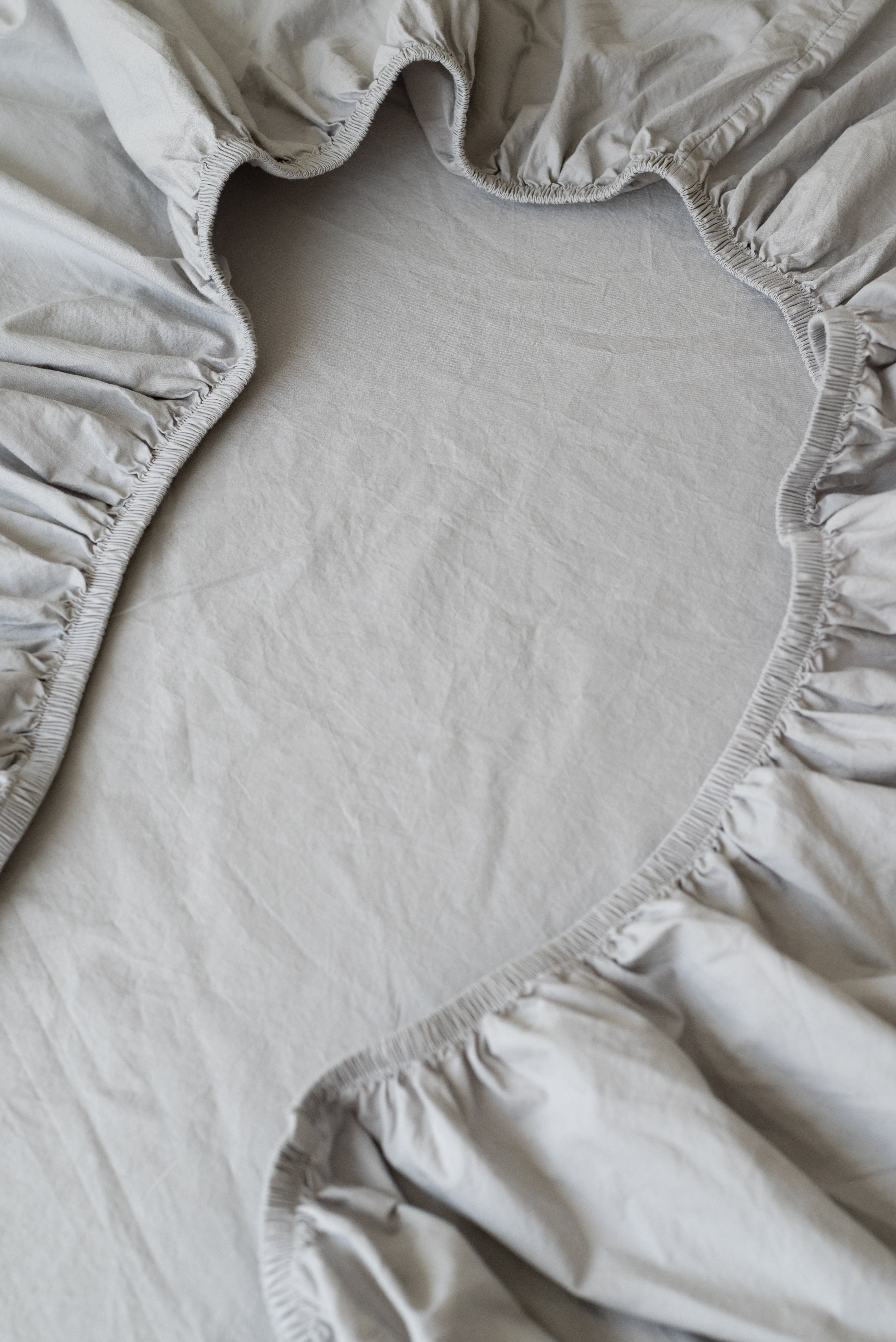 Sábana Bajera 100% Algodón Light Grey Stonewashed, 200 Hilos.