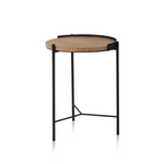 Mesa de estructura metalica en color negro y cubierta de madera de roble.