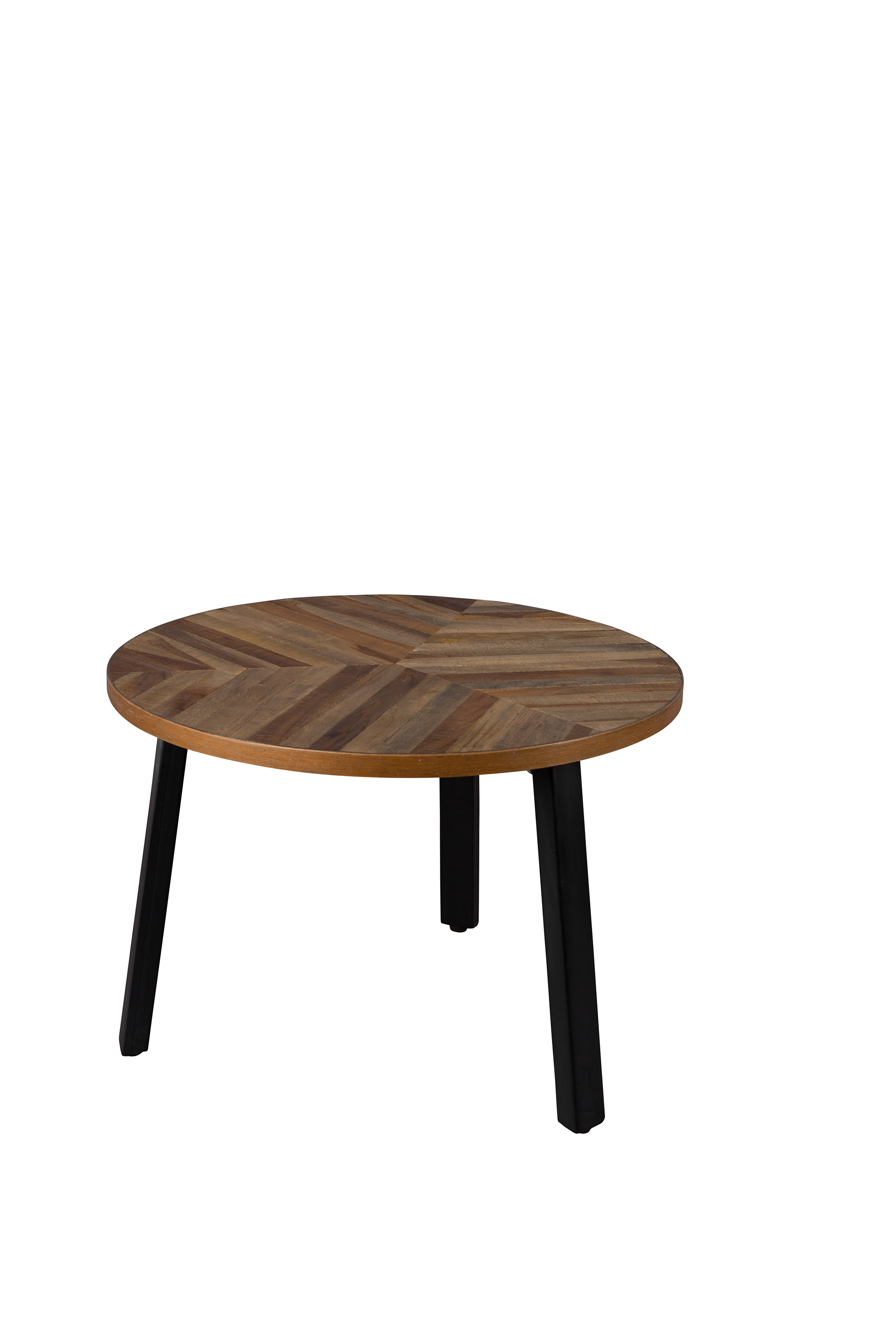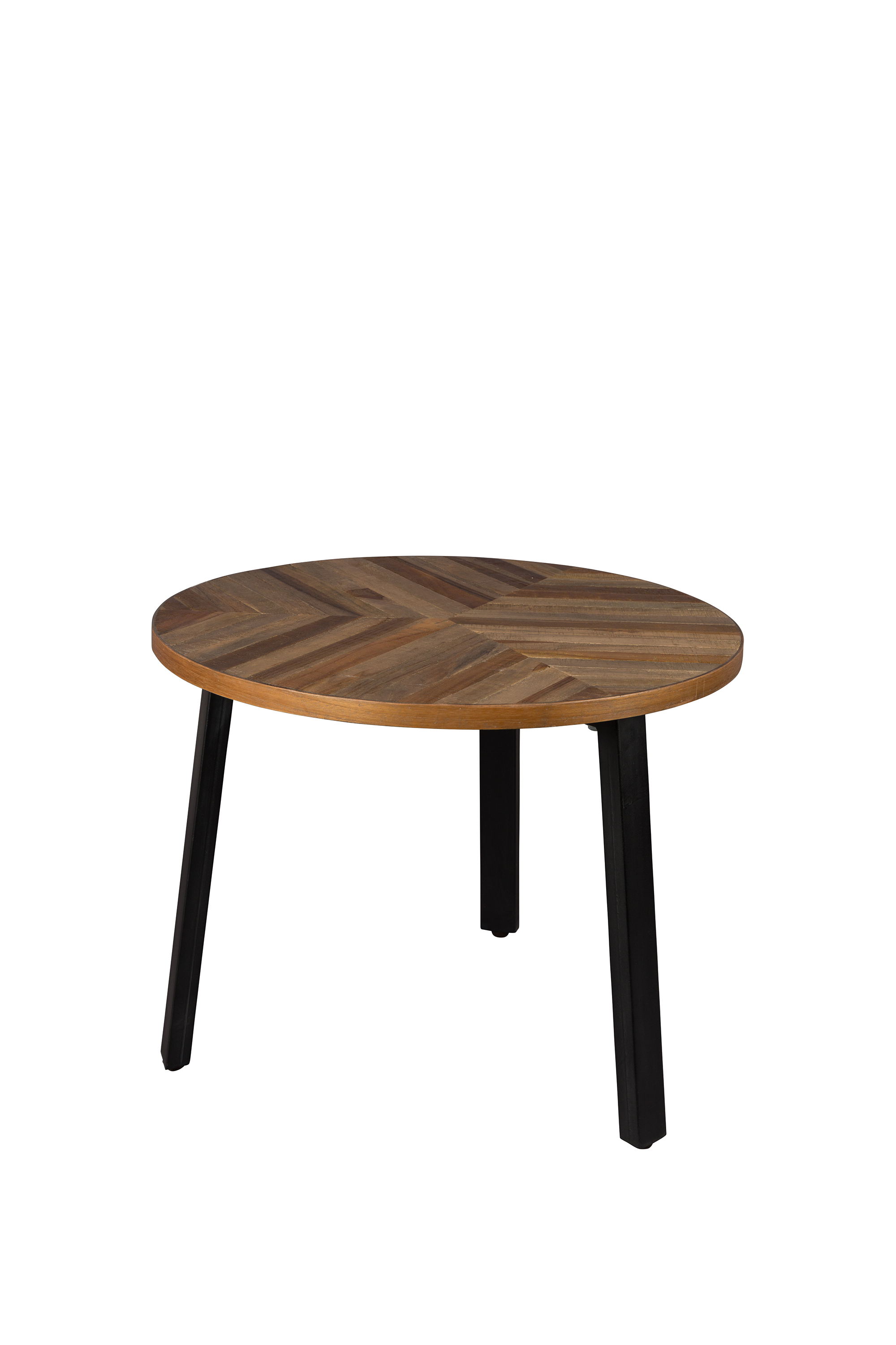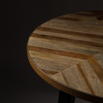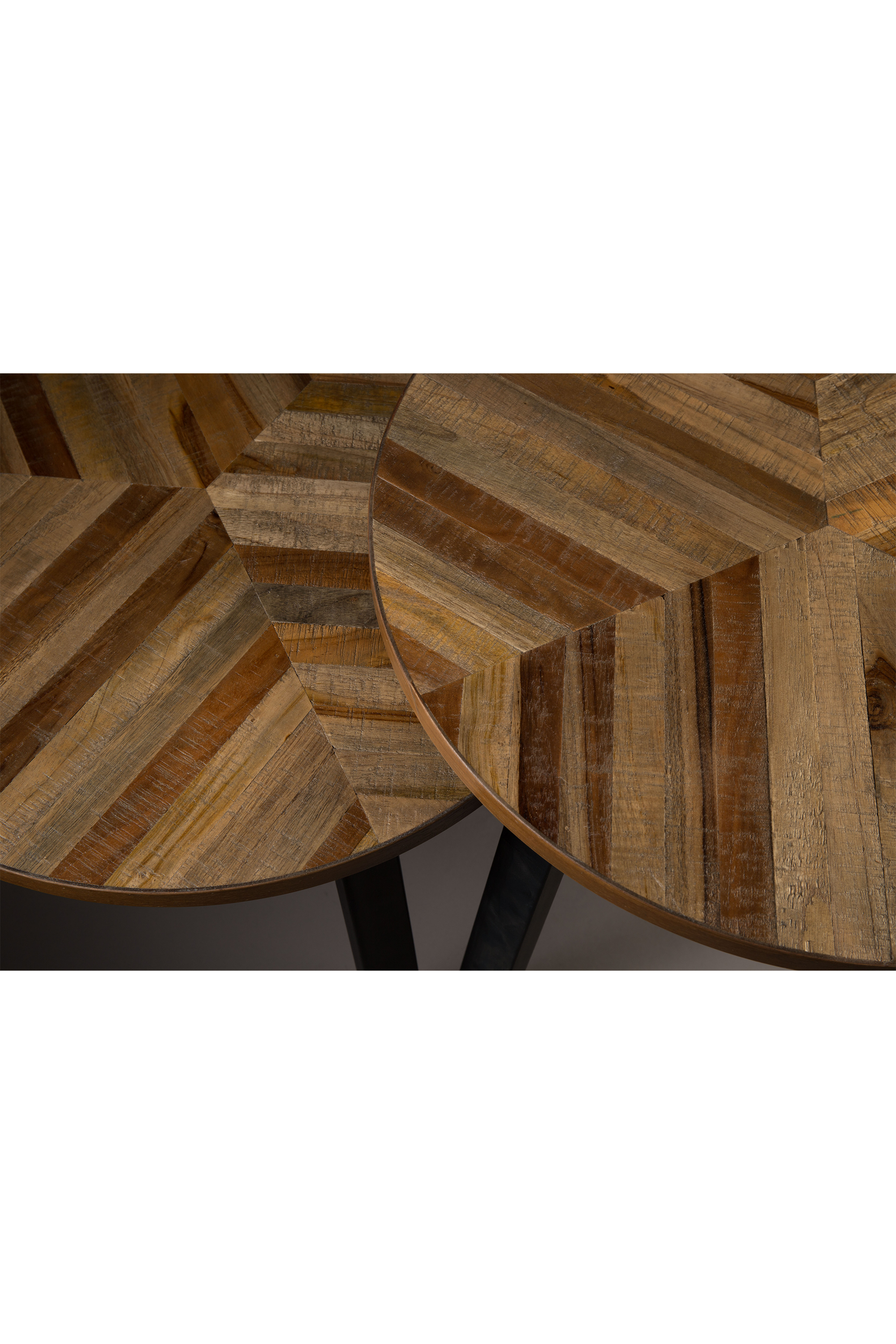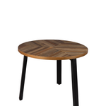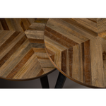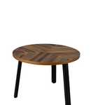 Set Mesas Mundu. Fabricadas en mandera están acabados en chapa de teca con un diseño especial que recuerda a un patrón de espiga y patas metálicas negras. Añade un toque contemporáneo y funcional a tu hogar con estas mesas auxiliares versátiles.