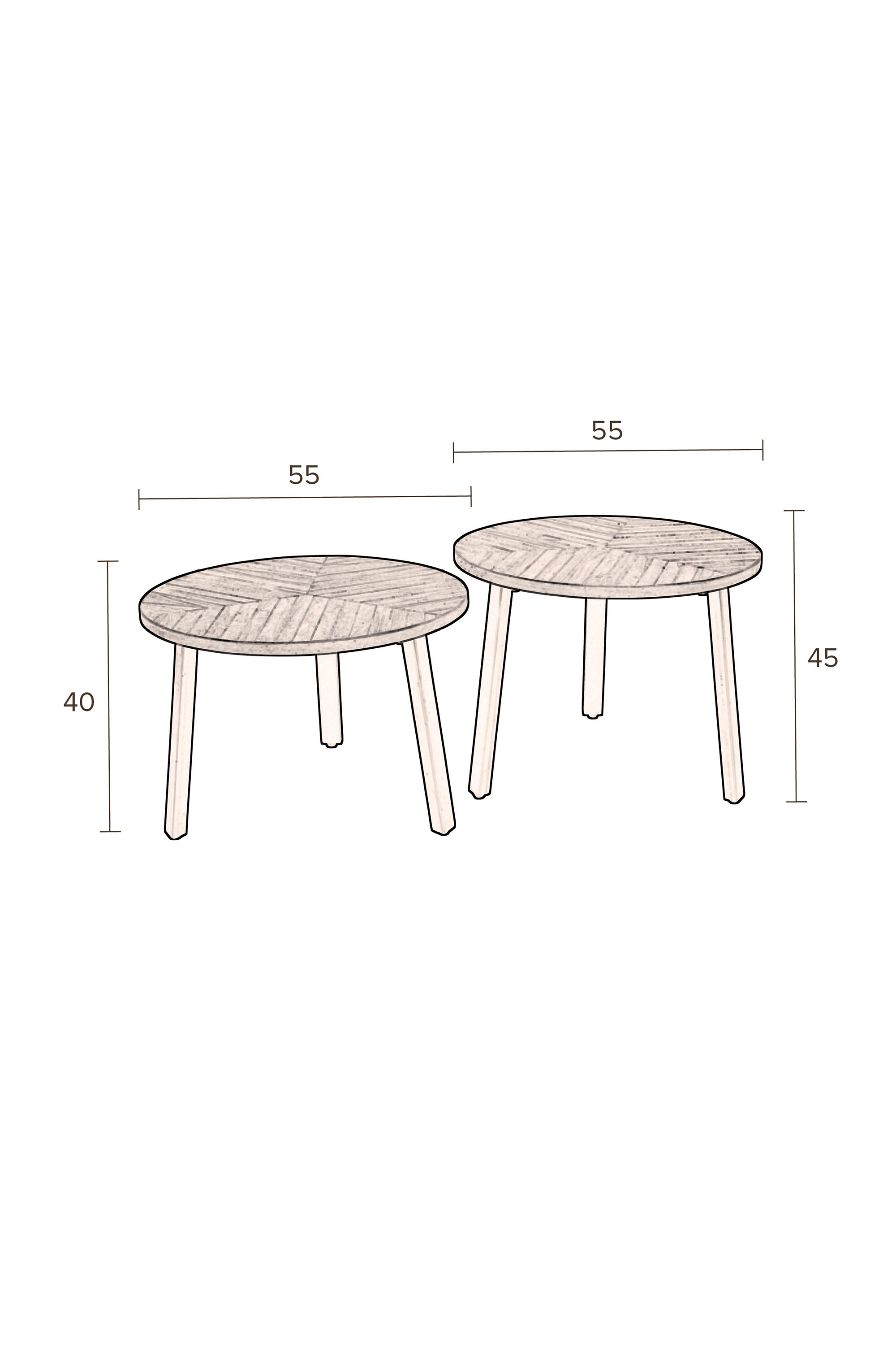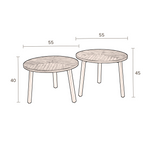 Medidas: Mesa Grande: 55 cm diámetro x 45 cm alto / Mesa Pequeña: 55 cm diámetro x 40 cm alto.