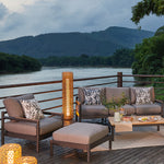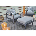 Tubo de aluminio electropintado en color gris oscuro con cubierta de madera de teca.