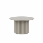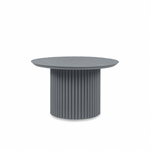 Mesa de centro Olsen de diseño contemporáneo, fabricada en aluminio electropintado. Su cubierta redonda con sutil grabado orgánico y base cilíndrica acanalada conforman una pieza sólida y elegante.