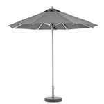 Quitasol de aluminio electro-pintado y tela Sunbrella, en color grafito. Base redonda 60 kg.